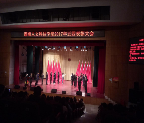 5月4日晚,在这个属于全国青年的节日里,太阳成官网于逸夫楼音乐厅举行五四表彰大会,旨在表彰工作突出,成绩优异的人文学子以及优秀团组织。参与本次大会有学校党委书记郭军,党委副书记刘铁铭,各学院团总支书记,学工处老师以及各班级学生代表。