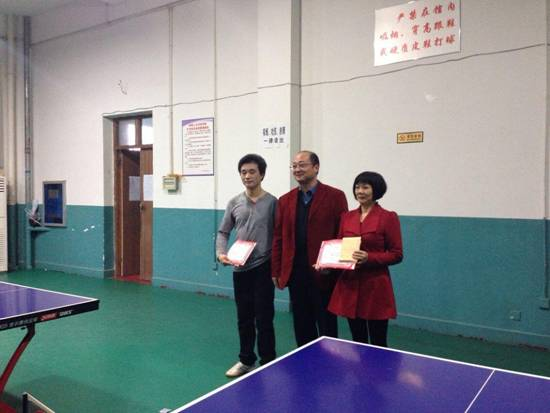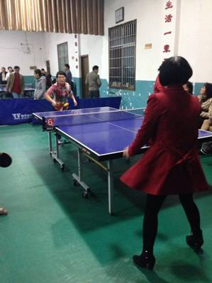 乒乓球比赛分男子4组、女子4组进行,每场采用五局三胜制,每局11分。运动员们在比赛过程中,挥汗如雨,积极拼搏,不到最后一刻决不放弃的精神深深地吸引了在场的每一个人。比赛中不时传出热烈的喝彩声,兴奋的“好球”声不断。历经3个小时的激战,谭显胜、郑小娟分别获得男、女第一名,胡军和、刘桃李分获男、女第二名,竺锡武、马立农分获男、女第三名。