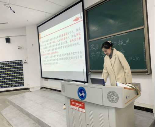 为加强团员思想政治教育,提高团员思想政治素质,11月27日,农业与生物技术学院在致远楼119、120举办第十九期团员培训班。此次培训由院团总支书记章叶、团副彭美君主讲,参加人员有2024级全体团员及2022、2023级部分团员。