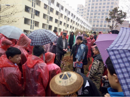活动共分两部分,首先集合准备发放工具和小树苗,分组后在专业老师的指导以及带领下,植树活动正式开始。尽管天阴沉沉的,下着小雨,但浇灭不了农生院学子们的植树造林,保护环境的深深热情,更浇灭不了学生会的服务热情。最后经过同学们的辛勤努力、团结协助和老师们刻苦指导,一百多棵小树苗终于栽育完成。活动结束了,但同学们依旧久久停留,看着雨中的小树苗仿佛几十年后的参天大树,承载着梦想生跟发芽。