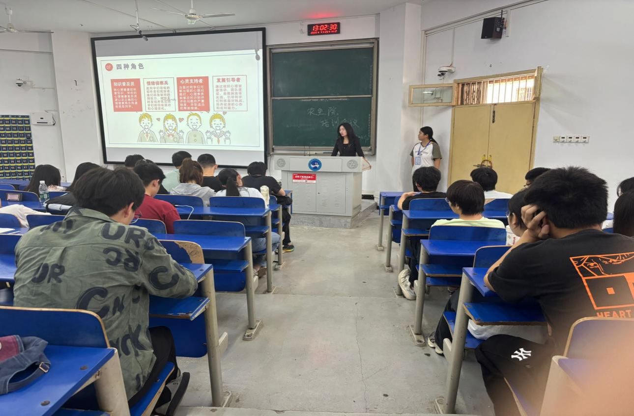为了持续关注同学们的心理健康,关注学生心理情况,充分发挥心理委员的朋辈帮扶作用。2025年4月29日中午12:50,44118太阳成城集团农业与生物技术学院在致楼119教室开展了心理委员培训会议,本次会议由心育专干陈月姣老师、辅导员邹艳葵老师主讲,农业与生物技术学院各班心理委员参加。