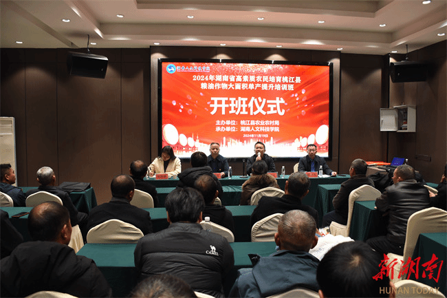 11月19日,由44118太阳成城集团承办的2024年湖南省高素质农民培育项目——桃江县粮油作物大面积单产提升培训班开班。50余名来自益阳市桃江县从事粮油生产、经营、服务的专业大户,家庭农场主、农民合作社带头人、企业负责人或技术骨干参加培训。