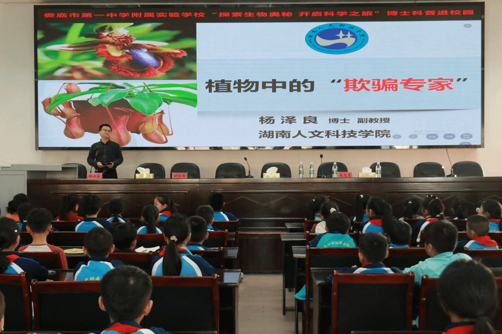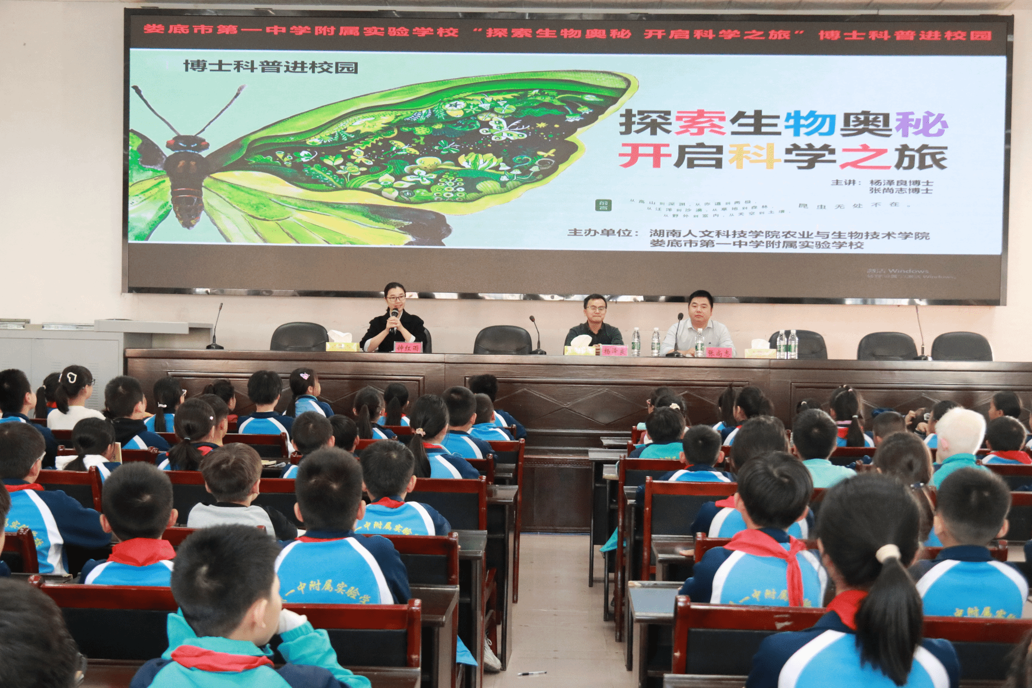 2024年10月30日,农业与生物技术学院杨泽良博士、张尚志博士走进娄底市第一中学附属实验学校,开展“探索生物奥秘 开启科学之旅”专题科普活动,娄底一附五年级全体学生参加。