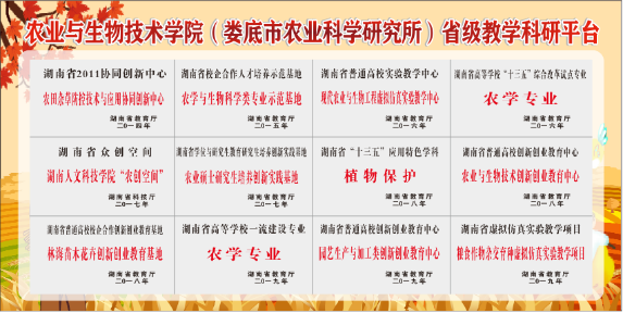 农业与生物技术学院由原生命科学系和娄底市农科所整合组建,于2011年获得“服务国家特殊需求”农业硕士专业学位研究生培养资格。现开设资源利用与植物保护、农艺与种业2个农业硕士专业学位研究生培养领域。学院现有农学、植物保护、园艺、食品科学与工程4个本科专业,其中农学专业为湖南省“十三五”综合改革试点专业和省级一流本科建设专业,建有作物学校级“双一流”应用特色学科;植物保护专业为校级一流本科专业建设点和校级卓越农林人才培养专业,建有植物保护省级“双一流”应用特色学科;食品科学与工程专业为校级工程认证试点专业。学院现有《作物栽培原理》、《园艺花卉学》、《农业微生物学》、《粮食作物杂交育种虚拟仿真实验》和《土壤肥料学》等9名省级一流课程。