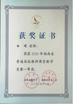 3.师资力量 现有专任教师20人(含兼职老师),其中正高职称人员4人,副高级职称6人,硕士生导师11人,博士10人。现有1个湖南省科技创新团队,1位湖南省普通高校教学能手,1位湖南省“芙蓉学者奖励计划”青年学者,1位湖南省121创新人才工程第三层次创新人才。