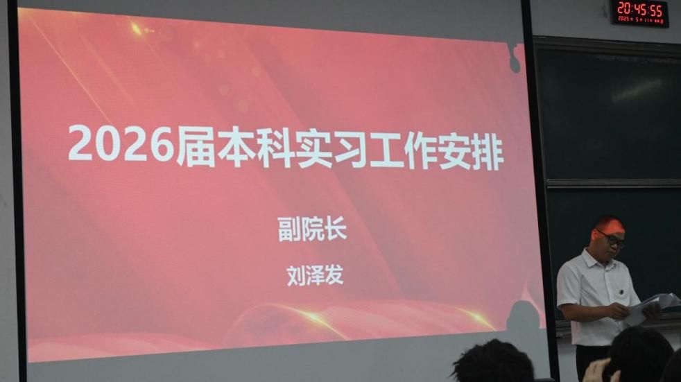 会议的第二阶段重点围绕实习动员展开。刘泽发对2026届实习工作方案进行了详尽的解读,特别强调了实习与职业发展之间的紧密关联。