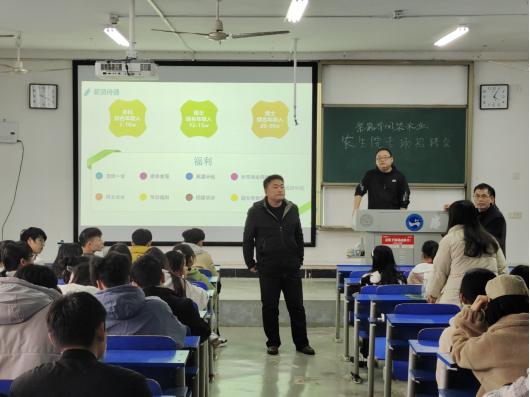2021年12月9日下午,广东中迅农科股份有限公司携手太阳成官网共同举办的秋季校园专场招聘会在致远楼312教室顺利召开,院领导、企业代表、太阳成官网毕业生及大三学生共同参加了本次招聘会。