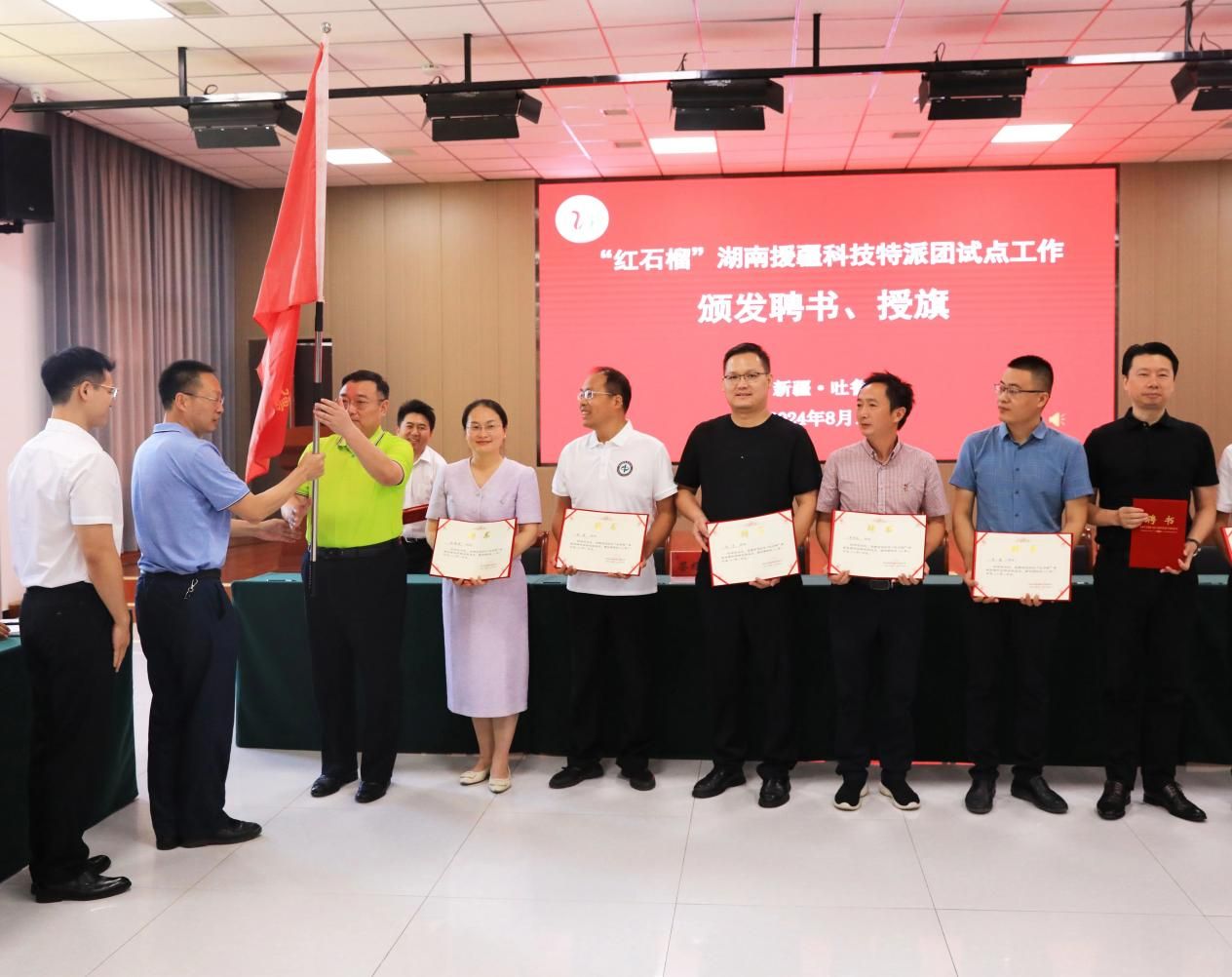 8月14日,“红石榴”湖南援疆科技特派团试点工作启动仪式在吐鲁番市举行。吐鲁番市委常委王成出席活动并致辞,副市长、湖南省援疆前方指挥部副指挥长周亮主持启动仪式。
