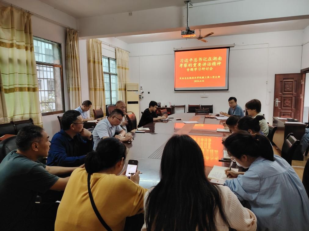 农生院教工第二党支部积极响应号召,于4月16日下午在强毅楼309室召开支部党员大会,专题学习并讨论习近平总书记考察湖南时的重要讲话精神。此次会议由学院党支部书记刘显军主持,旨在将总书记的指示精神深入传达到每一位党员心中,推动湖南农业现代化事业的进一步发展。