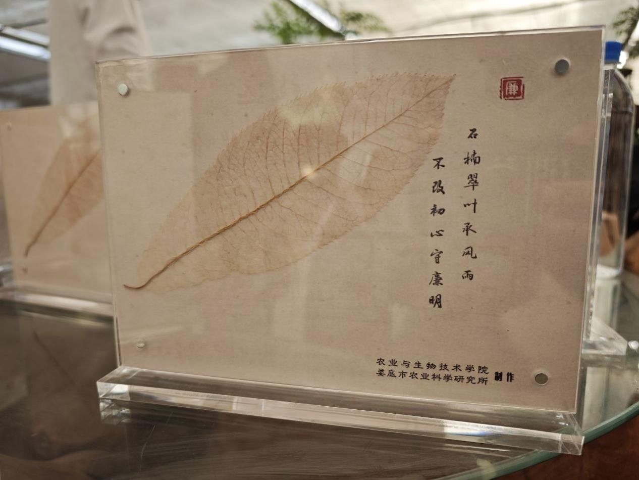 在基地连栋大棚内,植保教研室博士曾智正在指导师生党员专注进行叶脉书签创作。经过采集叶片、碱水蒸煮、剔除叶肉、漂色染色等工序,一片片普通绿叶蜕变为精美的“廉洁书签”。邹坤介绍:“此次活动是院所清廉校园文化建设的系列举措之一,院所将劳动教育、生态理念与廉政建设有机结合,打造“沉浸式”“体验式”廉洁教育阵地,使清廉文化如叶脉般渗透校园肌理。”向国红指出:“本次活动是廉政教育‘活态化’的创新实践,通过‘专业+美育+思政’的跨界融合,让廉洁文化可触可感、可观可学。”学生代表潘晓雨表示:“剔除叶肉的过程就像荡涤思想杂质,这种将专业实践与品格塑造结合的教育方式,让我们对清廉文化有了更深层次的体悟。”