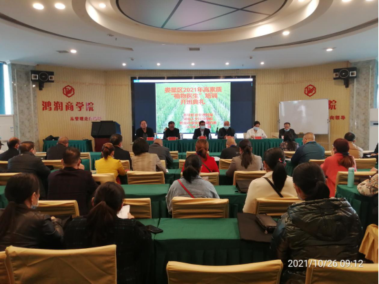 10月26日上午,娄星区2021年高素质农民培育“植物医生”在鸿润湘阳酒店8楼会议中心正式开班。娄星区农业农村局党委委员、副局长赵意志、总农艺师彭金花,科教股、植保站负责人,农生院院长(农科所所长)陈勇、农生院副院长(农科所副所长)康林峰,班主任、辅导员老师以及57名遴选自娄星区各乡镇农药经营从业人员参加了开班仪式。仪式由康林峰主持。