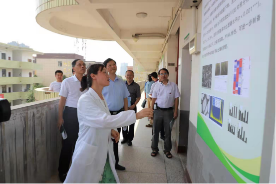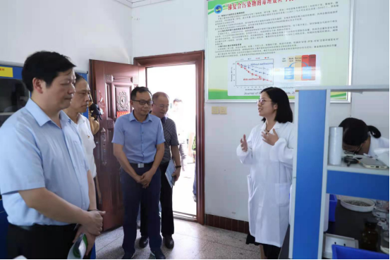 考察现场,段仁燕教授围绕锡矿山锑复合污染生态修复,从生物学、生态学、材料科学、环境工程、生态模拟等多学科交叉角度就解决锑复合污染问题进行全方位的讲解汇报。曾立新在充分了解我院的重点实验设备、师资力量和所取得的教学科研成果之后,对太阳成官网重点实验室的建设工作表示高度认可,充分肯定了锡矿山锑复合污染生态修复团队所做的前期工作,并对太阳成官网申报省级重点实验室的工作提出了建议,希望我院的工作能为解决国家卡脖子难题和湖南“三高四新”战略的实施添砖加瓦。