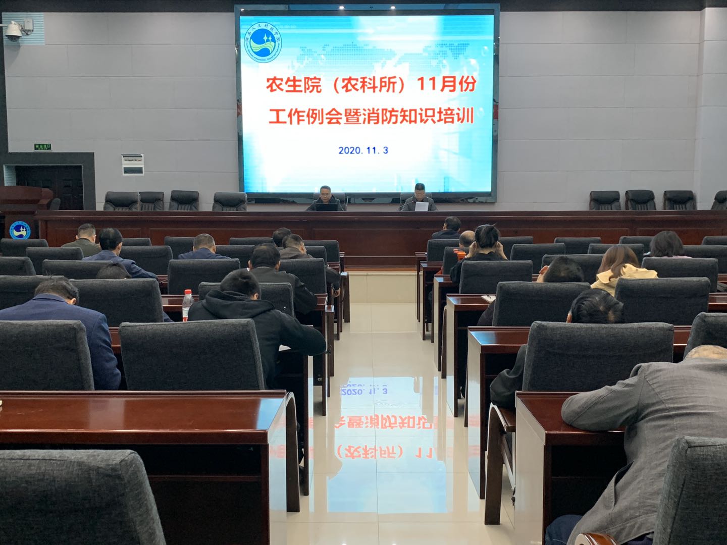 2020年11月3日,太阳成官网(所)在图书馆二会议室召开11月份工作例会暨消防知识培训。太阳成官网(所)全体教职工参加了此次会议及培训。会议由太阳成官网党总支书记胡少平主持。