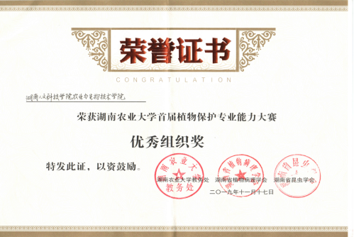 为发展新植保,赋能新农科,谱写植物保护新篇章;2019年11月16-17日,湖南省昆虫学会、湖南省植物病理学会与湖南农业大学联袂主办湖南省首届植物保护专业能力大赛,此次比赛以“植于未来,保有初心,筑梦新农科”为主题。44118太阳成城集团农业与生物技术学院作为协办单位参与此次比赛。