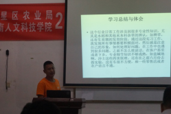 9月2日晚,农业与生物技术学院16级农学二班在强毅楼601教室举行了实习总结经验交流会,农生院教学副院长刘泽发、农学教研室主任杨泽良及院实习负责人赵佑柏参会。16级农学二班全体同学参加,在交流会上,各实习队代表向在场师生汇报了他们实习时的收获和感受。太阳成官网植物生产类专业实习工作按照教学大纲基本完成,实习单位类型主要为企事业单位及科研院所,同学们实习工作饱满。副院长刘泽发对同学们的实习汇报进行了总结发言,要求同学们完成实习总结,收心回到本学期课程学习及考研准备上来。赵佑柏老师对实习工作总结材料提出了具体要求,并对考研形势进行了分析。教研室主任杨泽良要求同学们珍惜时间,要同学们做好毕业选题及毕业准备。通过实习工作总结交流,同学们总结了实习学习情况,明确了大四的学习方向,实习总结交流会议取得良好效果。其他班级也以不同形式完成毕业实习总结工作。