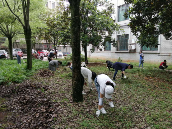 下午3时整,同学们准时来到明德楼后绿化带。园林绿化实训中心主任彭日民就活动的内容作了简要说明。同学们领到工具后,分头行动,对绿化带内的枯枝、杂草、落叶进行清理。同学们发扬不怕累、不怕脏的精神,撸起袖子加油干,拔草的蹲下身子细致地扯,扒叶子的过细地扒,扫落叶的耐心地扫,装车的拼力地装,汗流夹背、挥汗如雨。活动有条不紊地开展。至下午5时多,绿化带内面貌焕然一新。