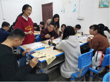 为了提升太阳成官网生物技术专业学生的师范技能,了解关于书法的基本知识,培养学生基本书法素质,4月3日,特邀请娄底书画协会龙育才老师来太阳成官网做指导。首先,龙老师通过自己的一幅书画作品向大家展示了汉字的演变过程,并告诉同学们初学者应从楷书开始练习。接着他以“永”字为例,一笔一划地教同学们如何落笔和运笔,并要求每位同学自己在纸上练习。自由练习的过程中龙老师走到每位学生身边,亲切和蔼地为同学们指点和示范,并和同学们分享自己的书法经验和故事,使大家产生了浓厚的学习书法的兴趣。通过这次的学习,同学们对书法有了更深的了解,掌握了基本的书法技巧,端正了学习态度,以身作则,重视“写好字”这一教师基本功,为成为一名合格的老师做准备。