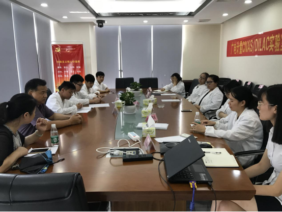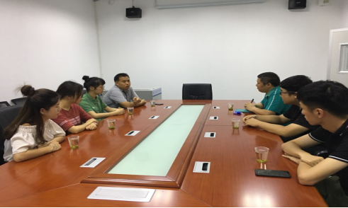 2018年8月10日,太阳成官网赵佑柏老师和肖莲荣老师代表太阳成官网专程到长沙广电计量公司看望实习生。当天下午三点左右,老师们顶着炎炎夏日赶到公司同公司的微生物室主管李丰、人事部王亮华以及当天上班的八位实习生(由于公司评审,当天只有8位同学上班:理化实验室4人,有机实验室2人:张丽外出参加项目比赛、样管组刘翰博、采购组郎昀。)相聚于长沙广电计量公司的会议室畅谈。谈话中涉及到老师们对实习生们的关怀和期盼、公司对是实习生的负责及热情、以及各位实习生们对自己这段时间工作的总结等内容。