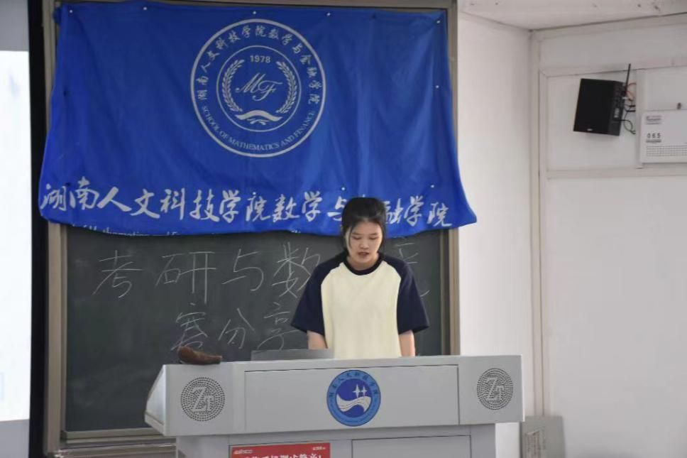邱巧、周美程两位同学主要从数学竞赛的备赛准备、比赛注意事项、赛后总结分享了自己的参赛经历和心得体会。丁格、刘逵宇、刘丹、唐凤、文佳乐五位同学分别通过线下与在线上方式分享了自己的备考经验和“考研妙招”。吴斯对数学竞赛和考研的重要性进行了强调,同时鼓励大家积极参加各项比赛。