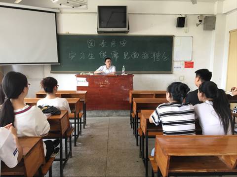 5月12日上午10:30分,在致远楼511举行了国泰君安实习生供需见面招聘会。本次招聘会主要针对14级和15级金融工程专业的同学。出席本次招聘会的有国泰君安负责人王戬、辅导员黄珊、以及参加招聘会的11名同学。