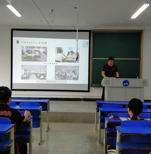 首先,周经理为我们介绍了电商行业的相关成就及其发展方向,并教同学们如何利用好“大数据”作出正确的决策。周经理借用“银行柜员”的例子向大家展示大数据时代下一些人工服务类职位受到一定的冲击,他告诉同学们一定要树立好远大的理想目标并随之努力。其次,周经理坦言学金融股的同学们在学好金融基础知识的同时也要熟练掌握各种数据分析的软件。随后,周经理向同学们推荐了其公司的免费线上教育平台,并向同学们推荐并介绍该平台推出的“渔人计划”活动。最后,周经理通过与学生进行互动交流让同学们明白身边的电商形式,并带领同学们预测市场的发展,鼓励同学们积极参与相关经济活动及比赛。