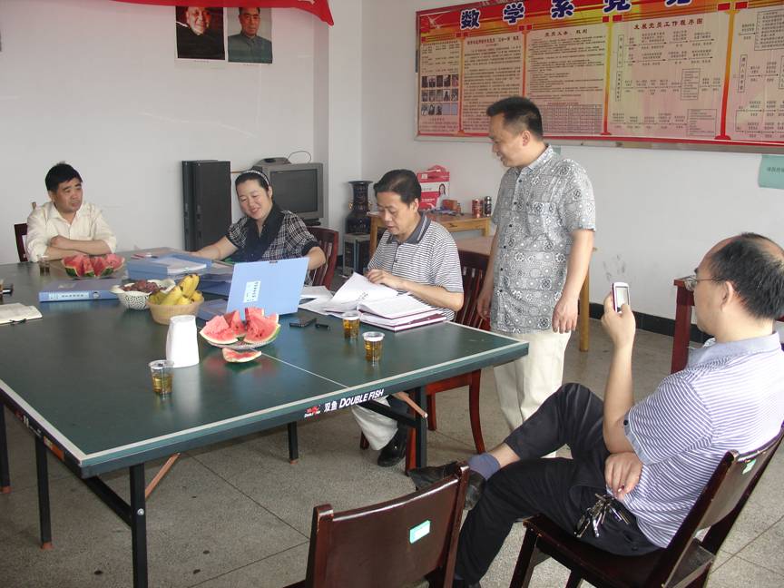 6月8日上午,校组织部长李高海与组织部刘刚华来数学系检查、验收我系教工支部示范性党支部建设情况。系领导,教工支部书记参加了本次验收工作。