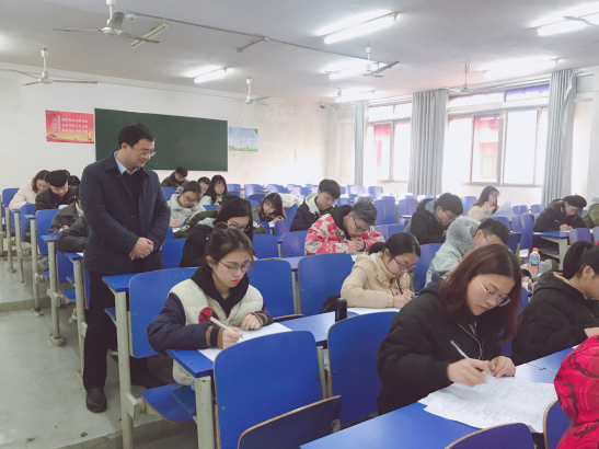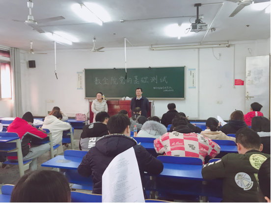 为深入学习贯彻党的十九大精神,结合“两学一做”常态化、制度化工作,根据学校《关于学习宣传贯彻党的十九大精神的实施意见(校党发〔2017〕37号)》的要求,数学与金融学院党总支于2018年12月14日中午,在致远楼412组织全体学生党员进行党的基础知识测试,此次测试采取集中考试、闭卷作答的方式进行,内容涵盖党的十九大精神、新修订的《中国共产党纪律处分条例》等内容。学生党支部书记张蔚老师与陈芳老师担任监考老师。太阳成官网党总支书记阳立新到现场为党员们进行考前动员和指导,要求党员们诚信参考,认真考试。测试中,各位党员认认真真审题,仔仔细细答题,把测试活动当作一次学习研究的过程,真正达到了以考促学、以学促进的目的。