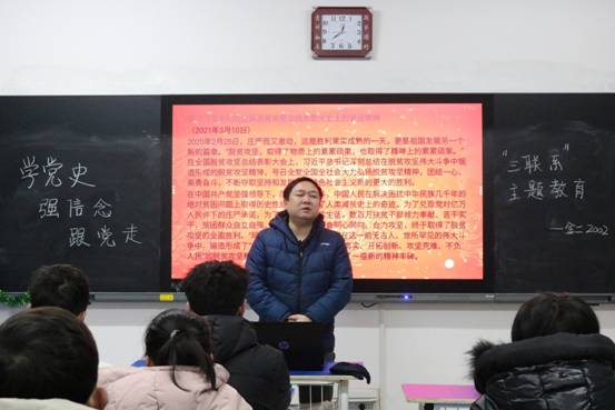 班会以视频观摩、文件学习、展开讨论以及知识抢答的形式,围绕学习习近平总书记在党史学习教育动员大会上的讲话精神、习近平总书记在全国脱贫攻坚总结表彰大会上的讲话精神,以及弘扬志愿服务精神、防止铺张浪费等相关主题展开。