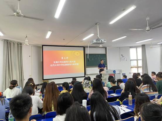 首先,尹钟宏同志对“实现中华民族伟大复兴凝聚着几代中国人的夙愿”进行了简要阐述。随后,尹钟宏同志继续讲述了中国共产党义无反顾肩负起实现中华民族伟大复兴历史使命,让同学们借此明白了中国共产党人的初心和使命,就是为中国人民谋幸福,为中华民族谋复兴。最后,尹钟宏同志围绕着实现伟大梦想必须进行伟大斗争、建设伟大工程、推进伟大事业的话题展开了论述。