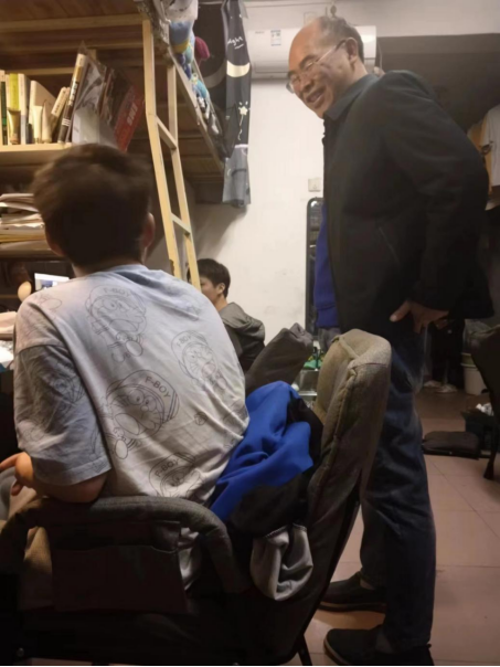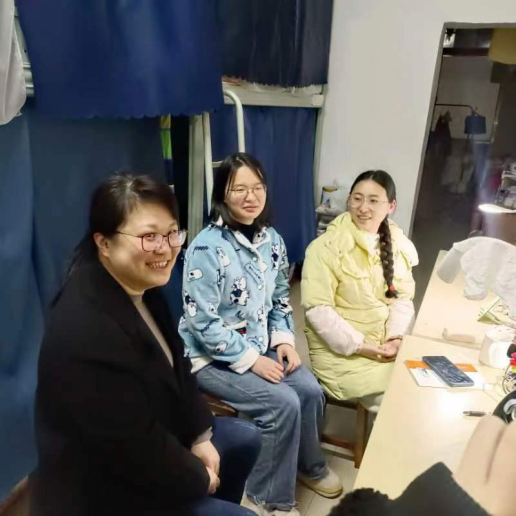 (校团委副书记刘佳了解同学们的学习、生活情况)