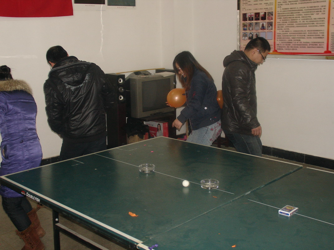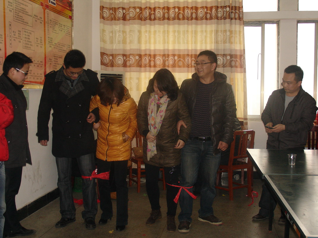 2012年3月7日下午,数学系在508活动室举行了“三八”妇女节庆祝活动。活动设四个趣味游戏:背靠背运气球、四腿三足、桌面吹乒乓球、背后投篮,每个女老师都与男老师搭档完成。男女老师默契配合,活动室内其乐融融,两个小时的比赛在一片欢声笑语中结束了。本次活动集广泛参与,形式创新,健康向上,环保为一体,活动取得了圆满成功,超出了预期效果。趣味活动后老师们在八仙楼聚餐。