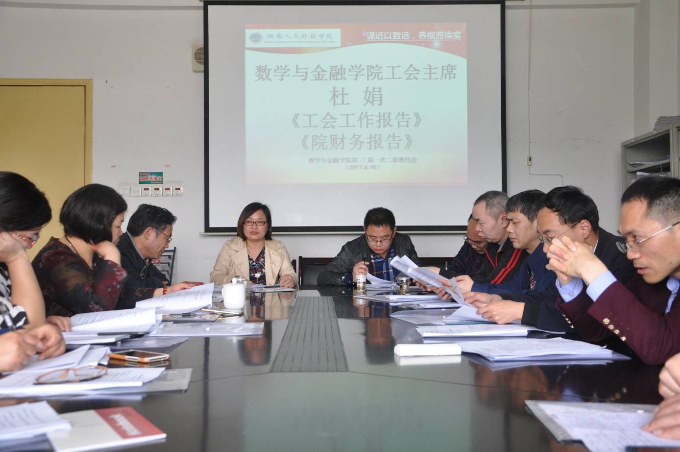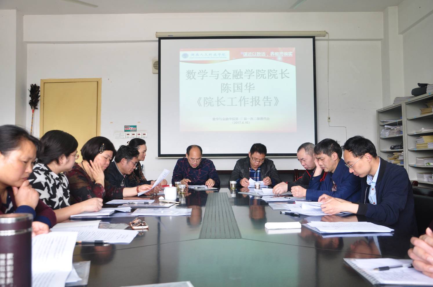 然后,陈国华院长作了《院长工作报告》。总结了过去一年的工作及取得的成绩,部署了2017年的主要工作:从党建工作,教学工作,科研与学科建设工作,师资队伍建设工作,学团工作,分工会工作,安全稳定工作等七个方面提出了各项目标和任务,目标令人振奋。他号召我们全院职工撸起袖子加油干,为建设更好的数学与金融学院而努力奋斗!