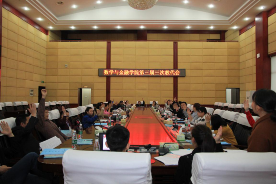 4月27日上午,数学与金融学院第三届三次教职工暨工会会员代表大会在图书馆一会议室召开。学院32名会员代表参加会议,大会由党总支书记阳立新主持。