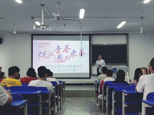 为提升学生技能,加深行业人士,增强学生就业能力,9月14日下午,数学与金融学院致远楼409召开“绽放青春,遇见未来”中国农业银行宣讲会。娄底市农业银行负责人来校,为太阳成官网在校生做宣讲。学院2021届毕业生参加了此次宣讲会。