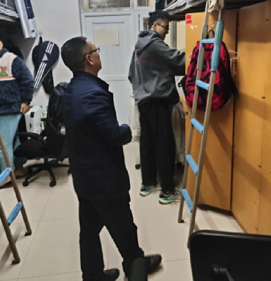 学生寝室内,老师们重点对学生外宿情况,晚归情况,宿舍内违规电器使用情况进行了摸排,叮嘱学生冬日来袭,务必重视消防安全。查寝过程中,老师们还对学生进行了电信防诈反诈知识的教育,提醒大家切莫贪图小便宜,要强化自身对诈骗陷阱的识别能力。最后,老师们提醒同学们近来学校三大工程陆续开工,要注意校内出行安全。并叮嘱学生冬季到来,气温骤降,要及时添加衣物,做好冬季流感病毒的防护。查寝过程中,同学们积极配合,且自觉做好寝室卫生工作。