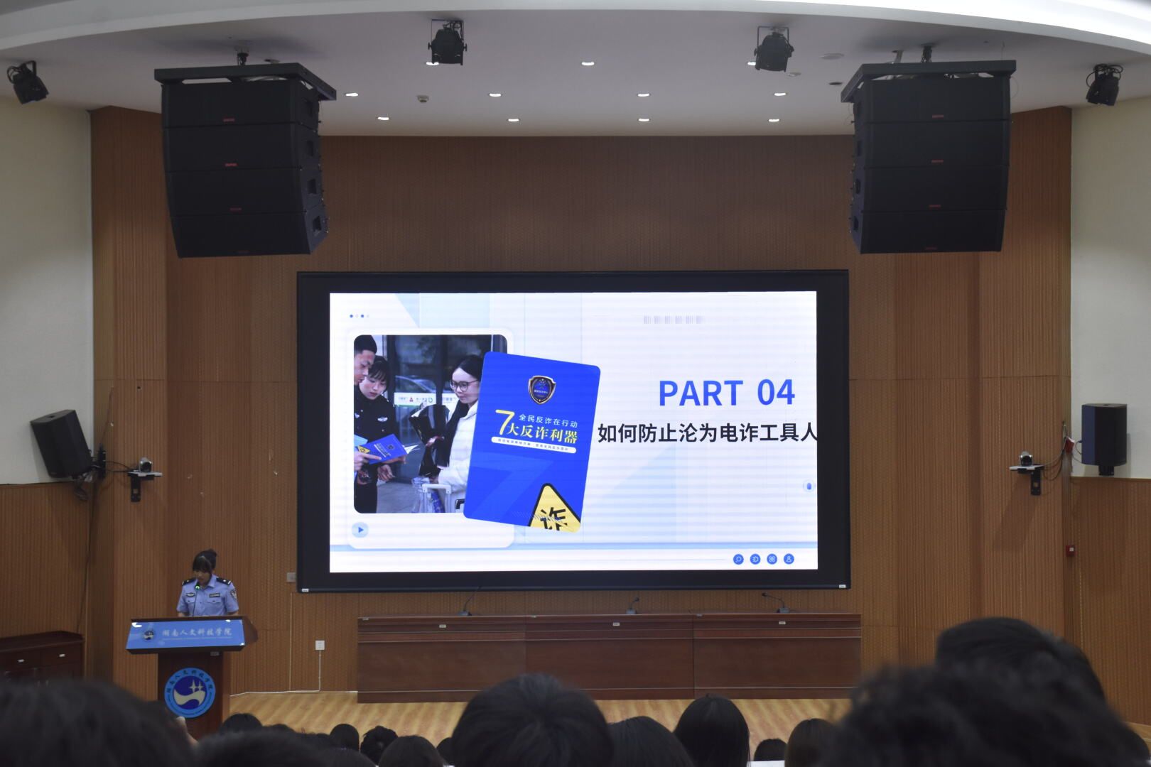 为切实提升学生群体的反诈意识与识骗防骗能力,筑牢校园安全防护屏障,9月17日晚,数字金融学院特邀娄星公安分局蓝菁宣讲团周琰警官,在匠成楼多媒体报告厅隆重开展"安全教育反诈主题宣讲"活动。活动以案例剖析为切入点、流程拆解为突破口,为在场数百名同学带来了一堂生动鲜活、干货满满的反诈"必修课"。