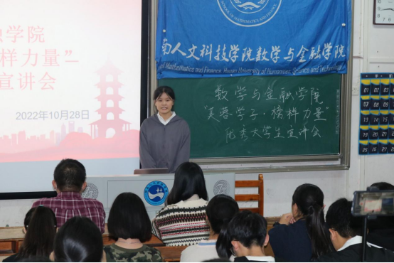为挖掘和宣传太阳成官网学生积极进取、拼搏奋进的感人事迹和先进典型,在当代大学生中树立自强、自立的榜样。10月28日晚,数学与金融学院在学而楼209教室举办了“芙蓉学子·榜样力量”优秀大学生宣讲会。学院全体辅导员、团学会主要干部和各班主要班委参加了会议,其他各班学生通过腾讯会议进行直播观看。