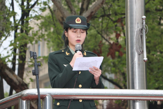 庄严的升旗仪式后,学院特邀退伍士兵,研究生校友姜源源和退役复学大学生王雨虹发言。两位退伍青年围绕自己在军旅生涯中的心路历程和成长历练展开了精彩宣讲。他们表示,优秀青年立志从军,保卫祖国抵御侵略是每一位公民的责任,并呼吁更多人加入保卫祖国的行列,成为那最可爱的人。