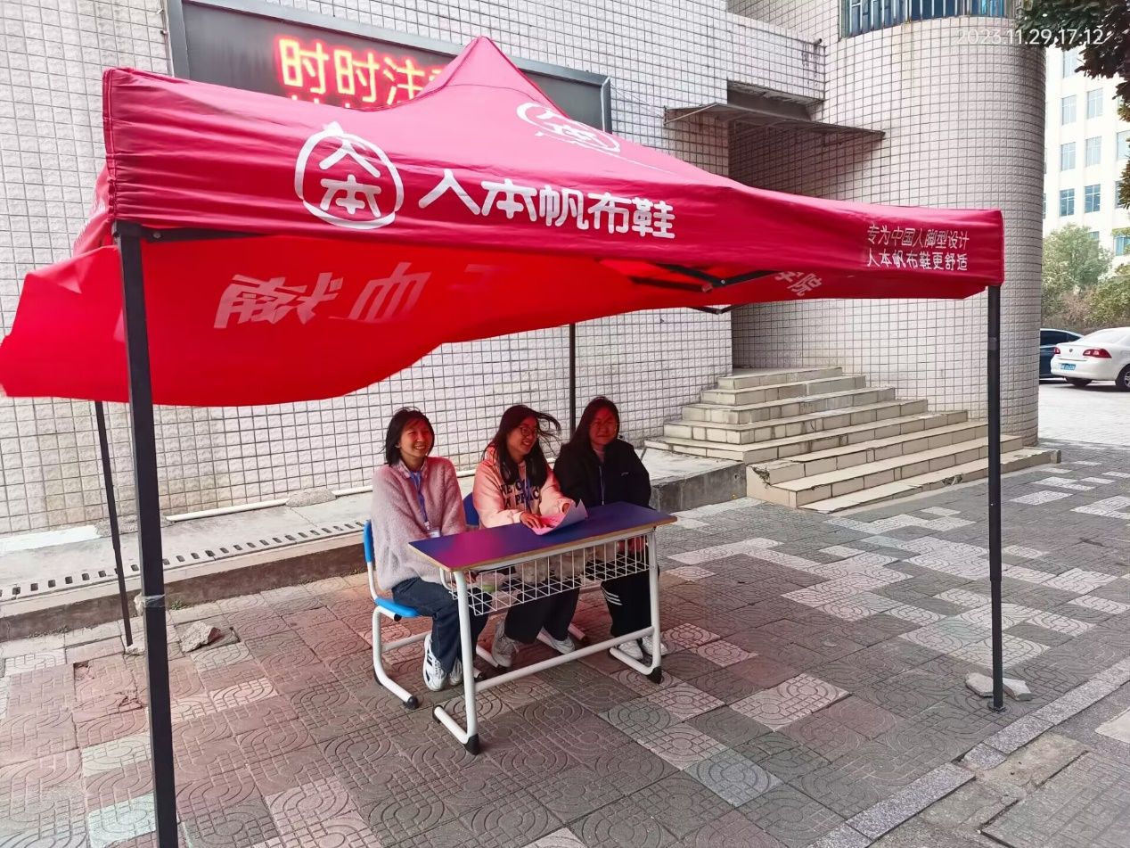 (青工部干事们在摆点处进行宣传)