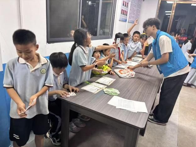 活动现场设置了“24点挑战”“移火柴”“巴什博奕”三个充满趣味与挑战的数学游戏。在“24点挑战”时,孩子们眉头紧锁、认真思索,充分调动加减乘除运算知识,快速组合数字计算出24。成功算出的孩子兴奋地高举双手,脸上洋溢着自豪的笑容;暂时遇到困难的孩子,在志愿者的耐心引导下,也逐渐掌握技巧,突破难关。“移火柴”游戏中,一根根小小的火柴棒,在孩子们的手中仿佛变成了神奇的魔法棒。他们或静静思考,或动手尝试,在一次次移动中锻炼逻辑思维能力,现场不时传来恍然大悟的惊叹声。而在“巴什博奕”区域,孩子们两两分组,在志愿者的讲解规则后,展开紧张刺激的博弈对战,现场气氛热烈,欢笑声此起彼伏。