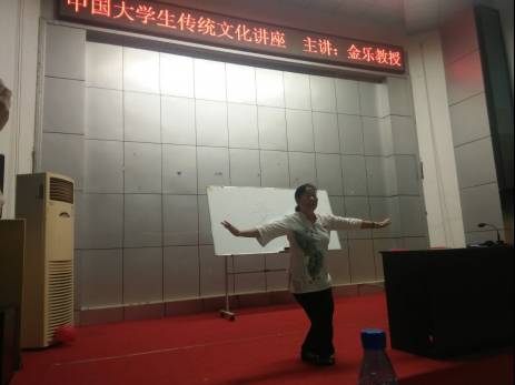 金乐教授讲述了中国传统文化的发展史和中国的道德文化,并现场展现了优美的传统文化礼仪,和学生进行了现场互动。这次讲座历时两个小时,金乐教授的讲座让我们大概了解了中国传统文化的发展史,让我们深感中国传统文化之深厚。最后周兰书记做了总结发言。全场师生对金乐教授的精彩演讲报以热烈的掌声。
