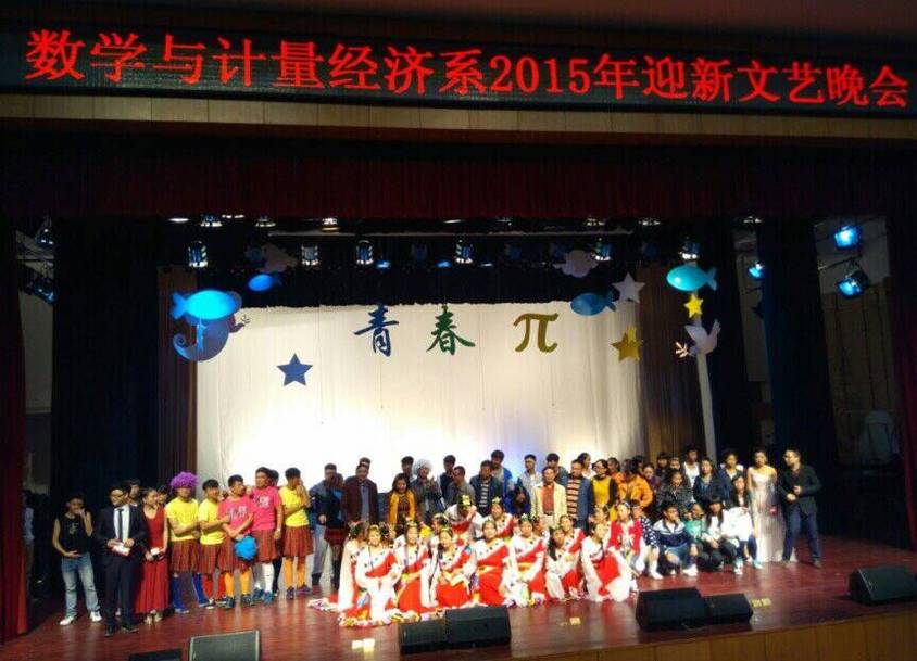 为了迎接2015级新生的到来,展现我系学子风采,11月1日晚7:30,数学与计量经济系2015年“青春π”迎新文艺晚会在太阳成官网逸夫楼音乐厅隆重举行。校长助理谢贵辉、学工处处长余为、团委书记谢柳、图书馆刘光辉书记应邀参加了此次晚会,另外出席晚会的还有我系党总支书记高平、系主任陈国华、党总支副书记周兰、全体教师、其他院系学生会和团总支负责人以及我系在校所有学生。