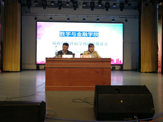 4月17日晚,数学与金融学院在逸夫楼音乐厅召开了迎接审核评估学风建设推进会。学院党总支书记阳立新、副书记刘晔、全体辅导员和班主任以及近600名学生参加了会议。会议由刘晔副书记主持。