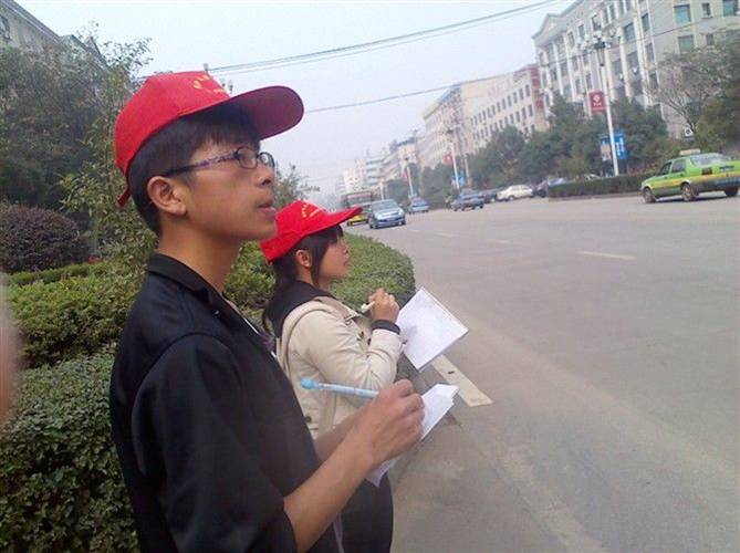 院志愿者正在登记车流量