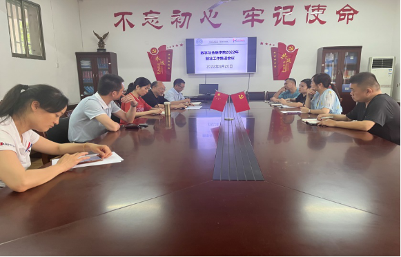 6月20日,数学与金融学院在学而楼203会议室召开期末2022届毕业生就业工作推进会,专题研究部署疫情影响下的学生就业工作。院党总支书记陈国华、院长李军成、副书记刘晔、副院长罗志军、龙志文、办公室主任肖芬、学工办主任牛津及辅导员李佳慧参加会议。会议由陈国华主持。