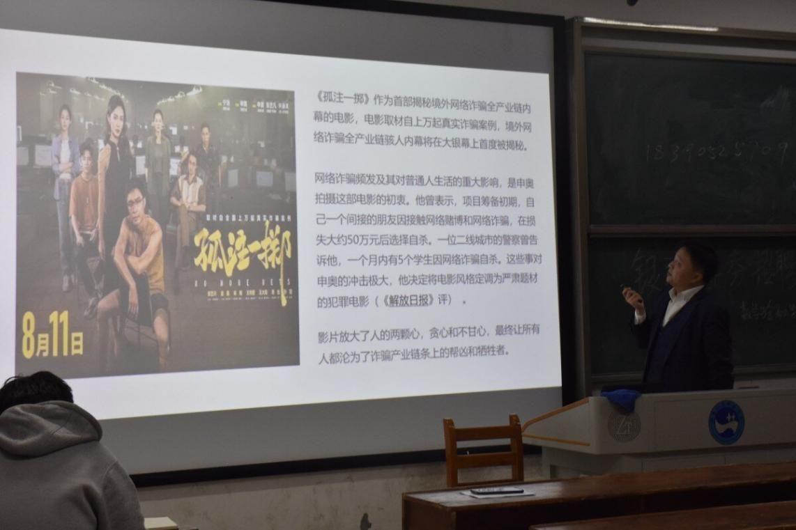 第三模块,营业部经理谢霆恺为大家宣讲了金融防诈反诈知识。谢经理通过最近热播的电影《孤注一掷》引入,解读了当前常见的诈骗陷阱,向大家普及电信诈骗、金融诈骗的危害。同时告诫同学们切勿贪图小便宜,要强化自身的防范意识,要及时了解最新的诈骗套路,掌握一些实用的防骗方法,为自己和家人的财产安全保驾护航!