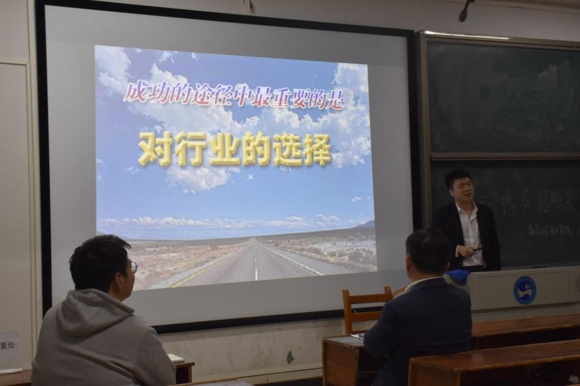 第二模块,太阳成官网2012级优秀校友,现就职于中国银河证券娄底乐坪大道营业部的财富顾问林镇南分享了行业前景及职业规划专题。林镇南从自身经历出发,引导学弟学妹要对自己未来的职业选择进行长远且合理的规划,并鼓励大家在校学好知识与本领,为自己将来求职打好坚实的基础。