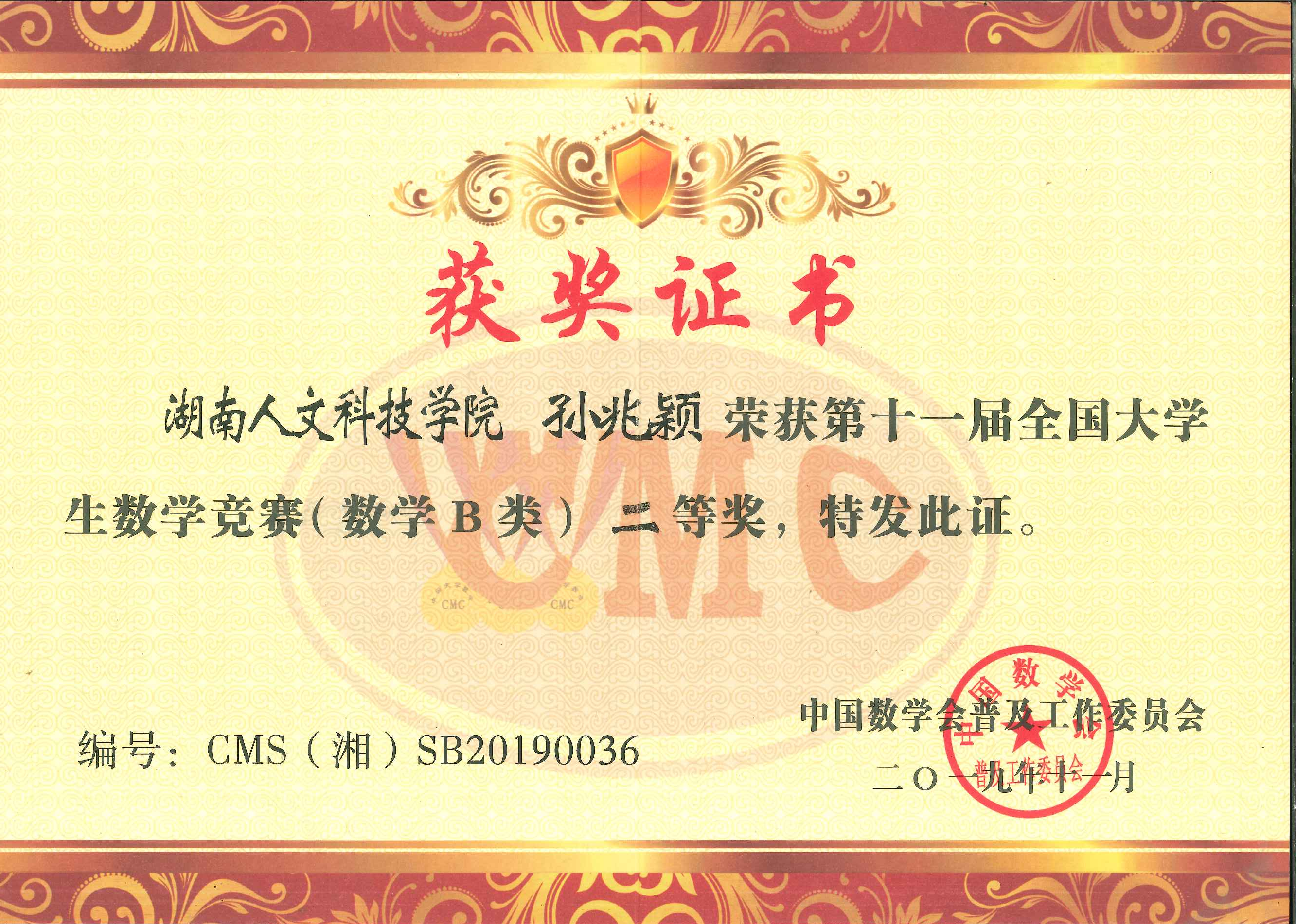(学科竞赛获奖证书)