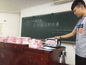 为培养出更好的专业技能,体现学生们的专业实践能力,2017年6月19日下午,数学与金融学院于致远楼320教室举办了“金手指”点钞大赛。参赛选手来自本次14级校企合作的金融工程和数学与应用数学(数理金融)方向的学生。