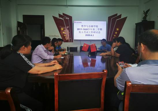 根据学校的工作部署,为保障新冠肺炎疫情形势下期末考试工作的顺利开展,6月1日,数学与金融学院在致远楼416召开了2019-2020学年第二学期期末考试工作研讨会。